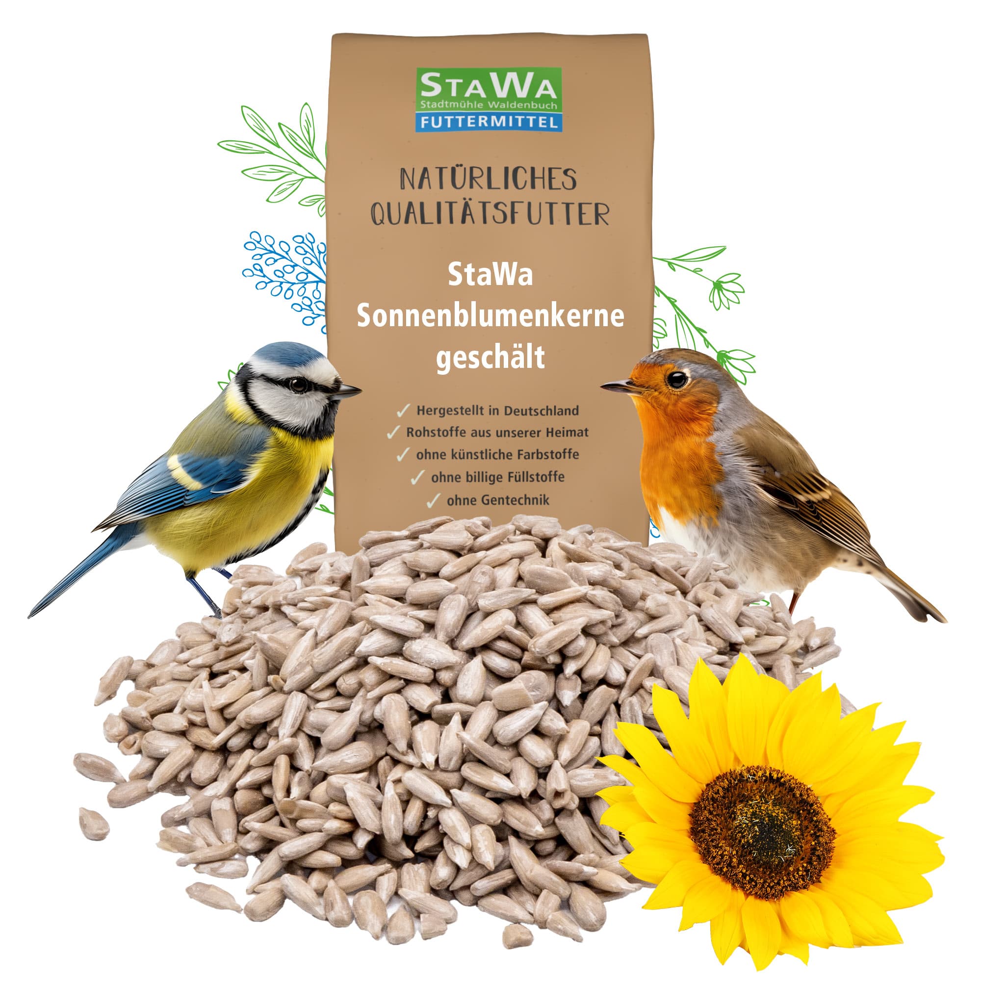 Sonnenblumenkerne geschält von StaWa – sauber füttern, Vögel stärken