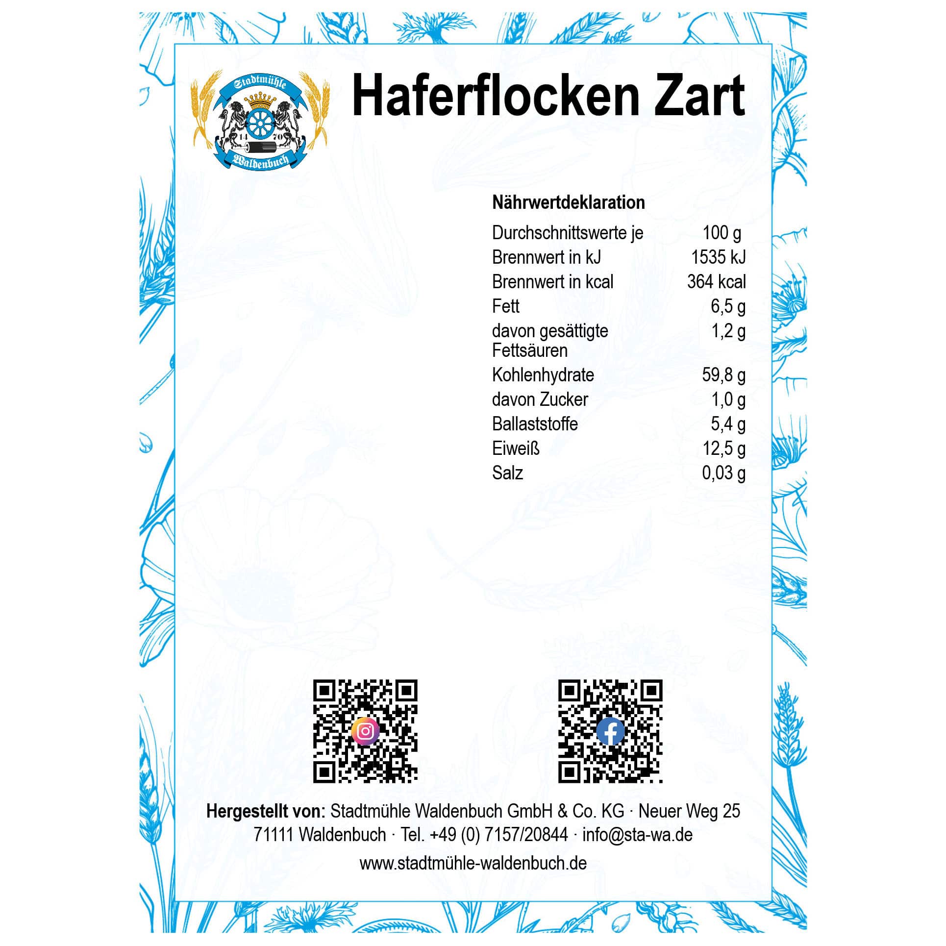 Bei unseren Haferflocken zart werden im Vergleich zu den kernigen Haferflocken, die Körner zerkleinert bevor sie zu Flocken werden. Das ändert aber nichts an dem Nährstoffgehalt der Flocken. Beide Haferflocken – kernig und zart entstehen aus dem ganzen Korn. Haferflocken sind sehr ballaststoffreich, deswegen machen sie länger satt und senken den Blutzucker- und Cholesterinspiegel. Der Ballaststoff Beta-Glucan, der in den Flocken erhalten ist, besitzt viele positive Eigenschaften, wie z. B. das er gut für das Herz ist. Des Weiteren haben sich Haferflocken als Haushaltsmittel für Magen Darm Beschwerden bewährt. Außerdem enthalten sie Antioxidantien, welche den Körper vor freien Radikalen schützt, sowie der vorzeitigen Alterung des Gewebes.