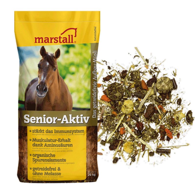 Bei hastigen Fressern, Pferden mit Futterneid, Zahnproblemen etc. empfehlen wir, Senior-Aktiv eingeweicht zu füttern. Dann z. B. zu 1 Liter Senior-Aktiv 1 Liter warmes oder kaltes Wasser geben und 15 Min. ziehen lassen. Tipp: marstall Senior-Aktiv kann auch eingeweicht, als Mash, verfüttert werden. Um die Raufutterversorgung sicherzustellen, empfehlen wir besonders bei alten Pferden die nicht mehr gut kauen können, unsere Wiesen-Produkte eingeweicht als Raufutterersatz anzubieten. 1 Liter marstall Senior-Aktiv = ca. 400 g