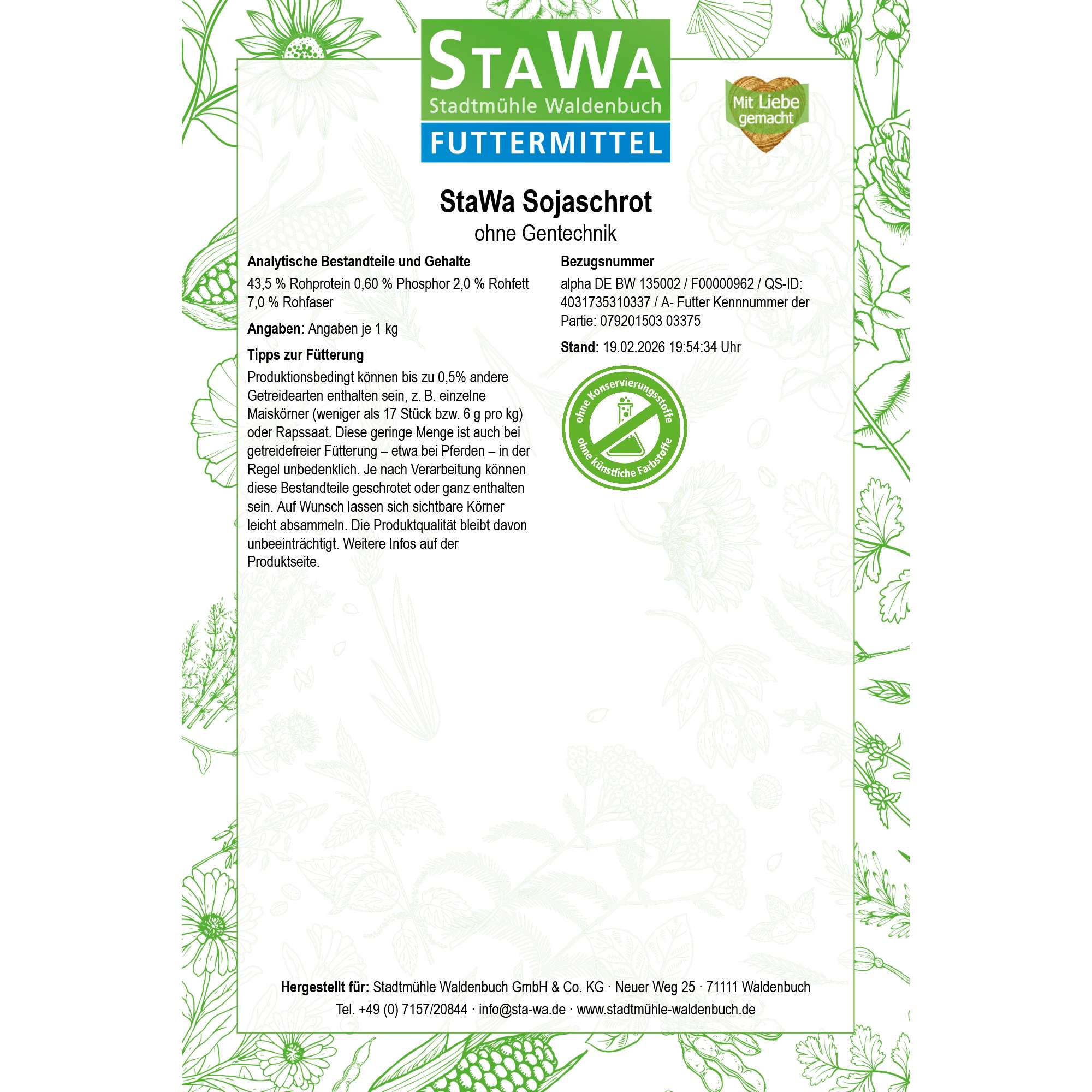 Fazit: Der Wunsch nach getreidefreier Ernährung bei Pferden ist ein Trendthema – oft mit dem Ziel, die Fütterung insgesamt „stärkearm“ und gut verträglich zu gestalten. Mit unserem dampferhitzten Sojaschrot sind Sie dabei in der Regel auf der sicheren Seite: Es liefert hochwertiges Eiweiß, und die transparent dargestellten, technisch unvermeidbaren Spuren bewegen sich in sehr kleinen Größenordnungen. Wenn Sie dazu Fragen haben (oder eine besonders strikte Fütterung umsetzen müssen), erreichen Sie uns jederzeit gerne per E-Mail oder telefonisch.