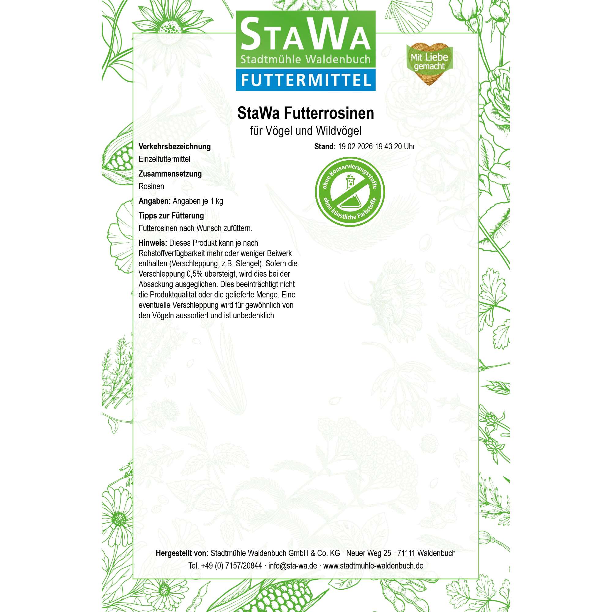 Produktbeschreibung für StaWa Futterrosinen für Vögel