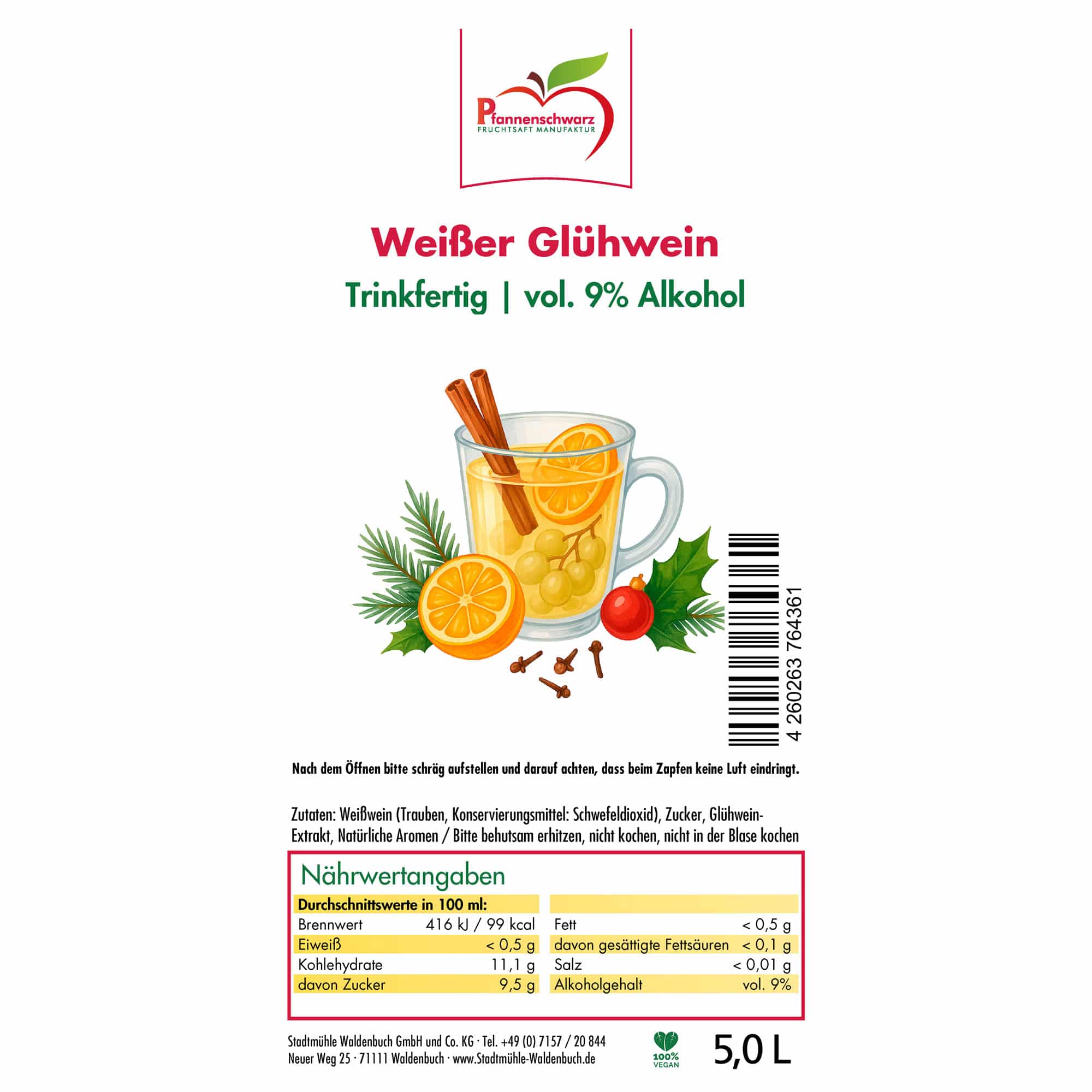 Pfannenschwarz Fruchtsaft Manufaktur – Glühwein Weiß (5L Bag-in-Box)