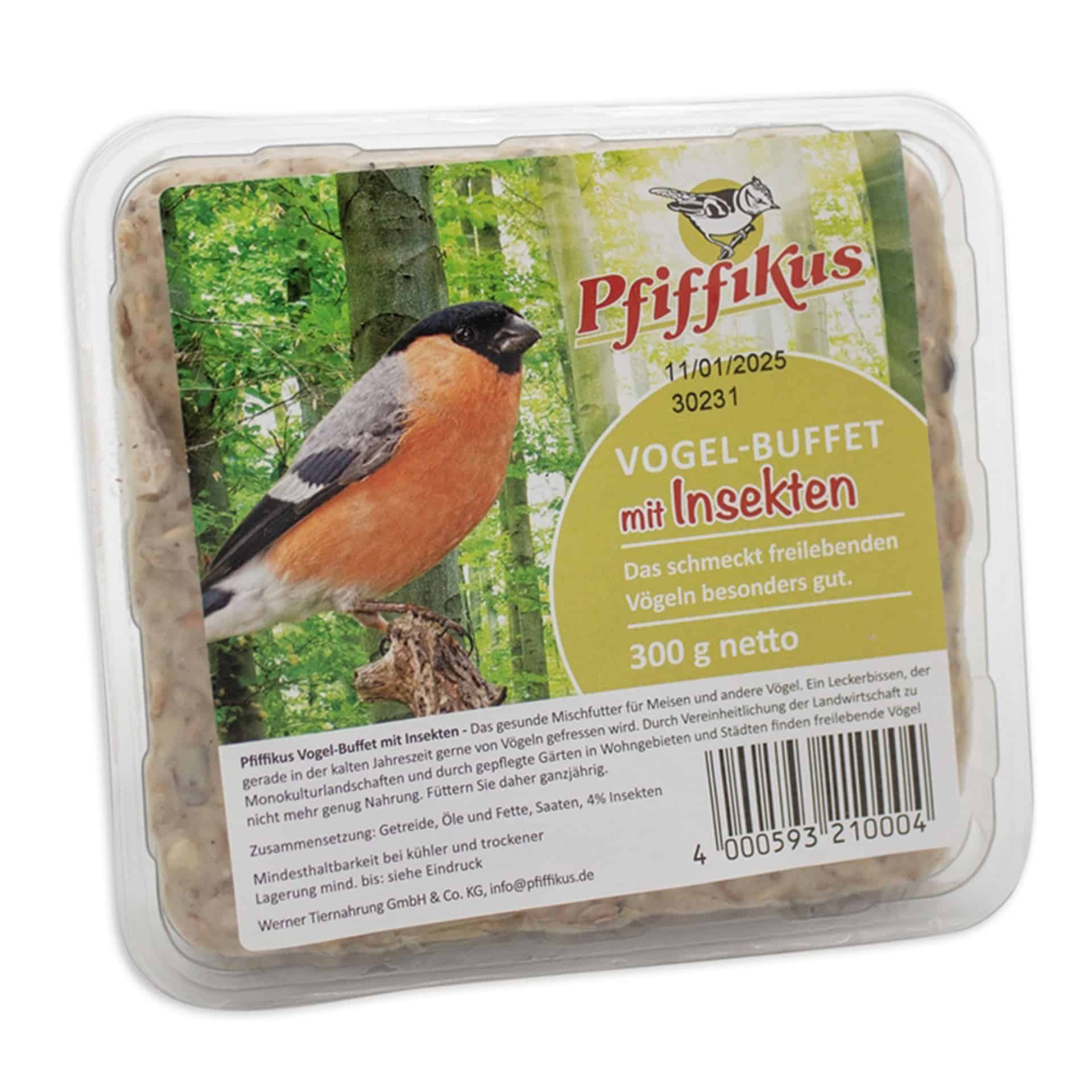 Das Pfiffikus Vogel-Buffet Insekten ist die ideale Lösung für alle Vogelfreunde, die Wert auf eine naturnahe und energiereiche Fütterung legen. Dieser kompakte Fettfutterblock ist speziell mit wertvollen Insekten angereichert – der natürlichen Hauptnahrungsquelle für fast alle heimischen Wildvögel.
