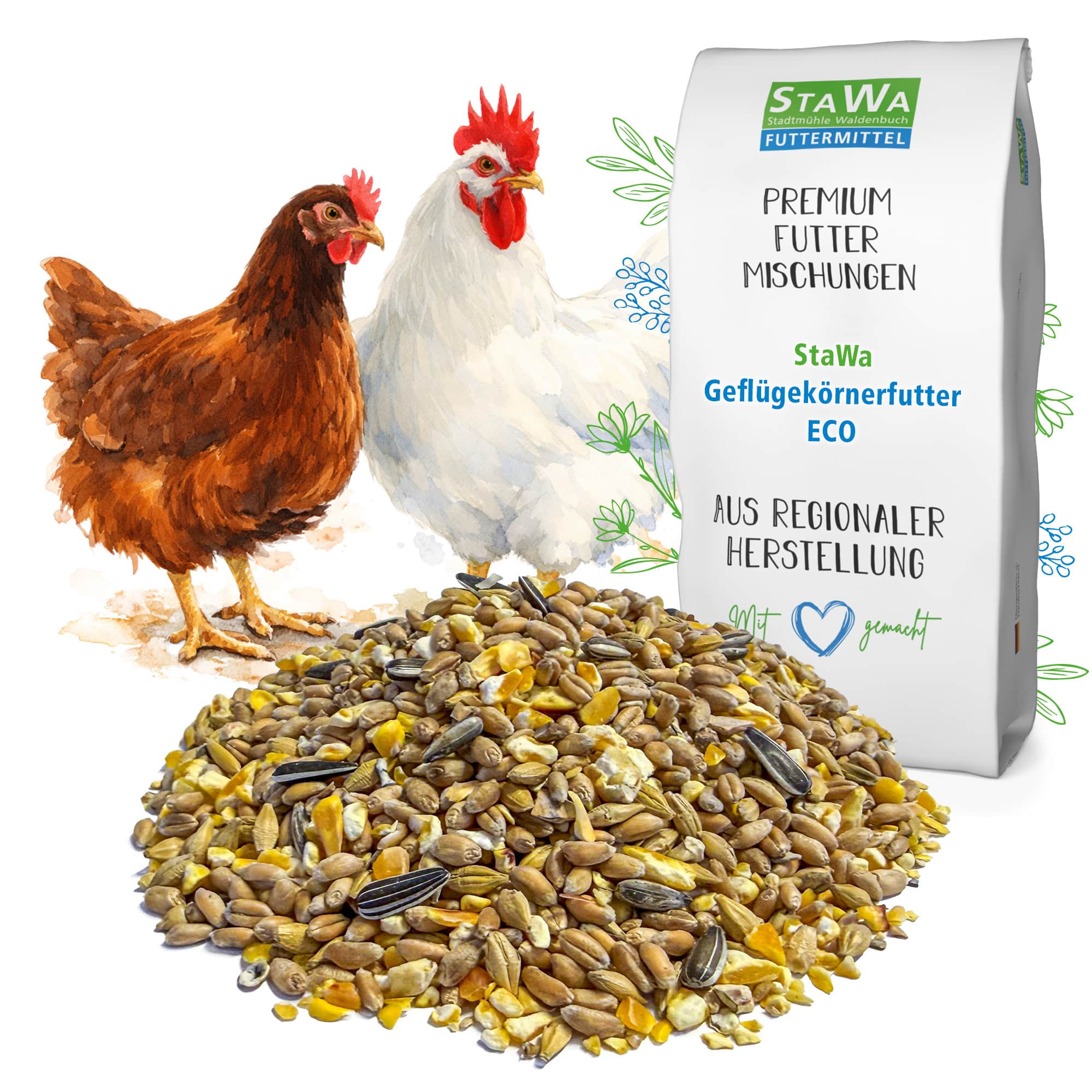| Zusammensetzung | Weizen, Mais, Gerste, Muschelschalen, Sonnenblumenkerne, Rapsöl |