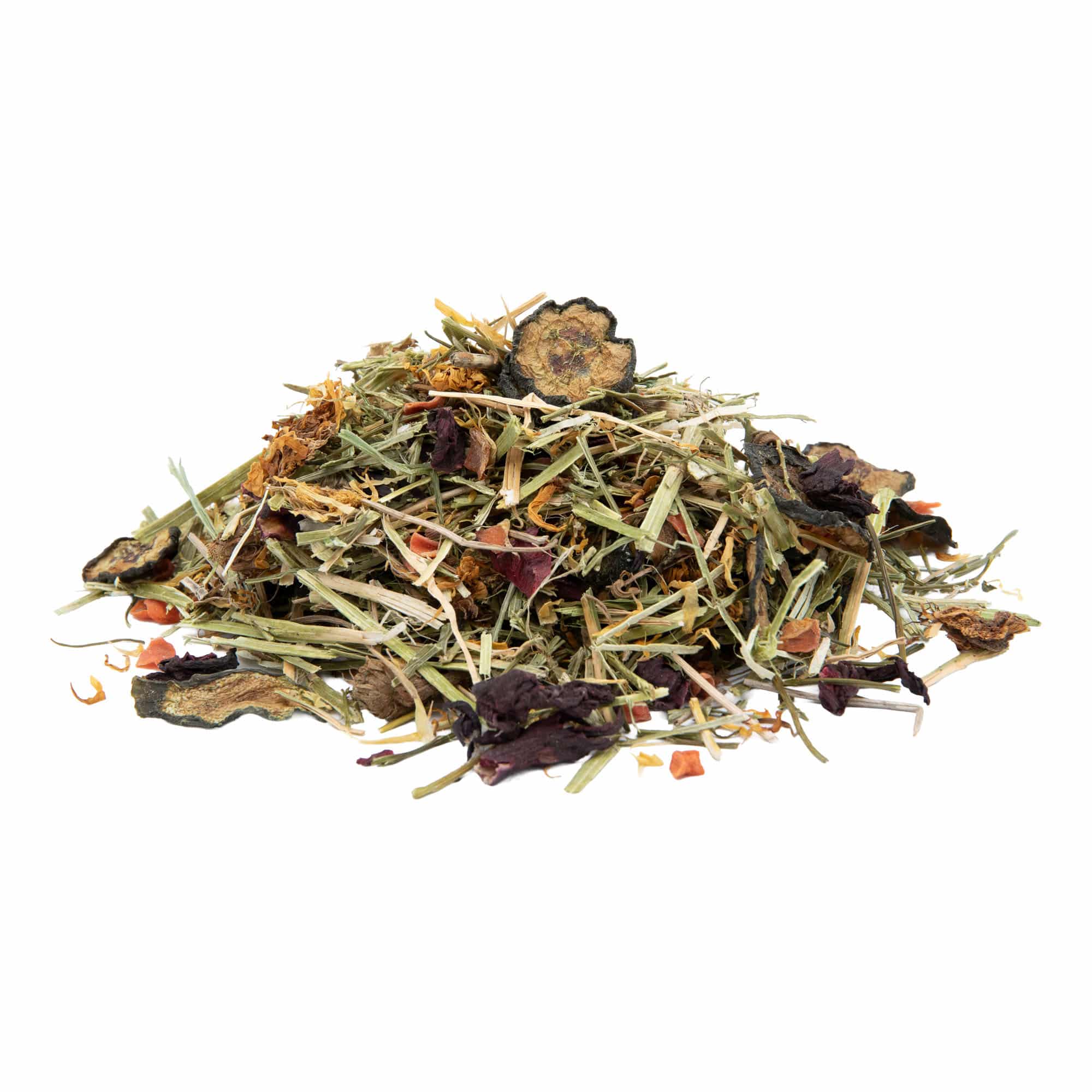 | Zusammensetzung | Luzerne, Karotten, Hibiskus, Petersilienstiele, Ringelblumenblüten, Gurkenscheiben |