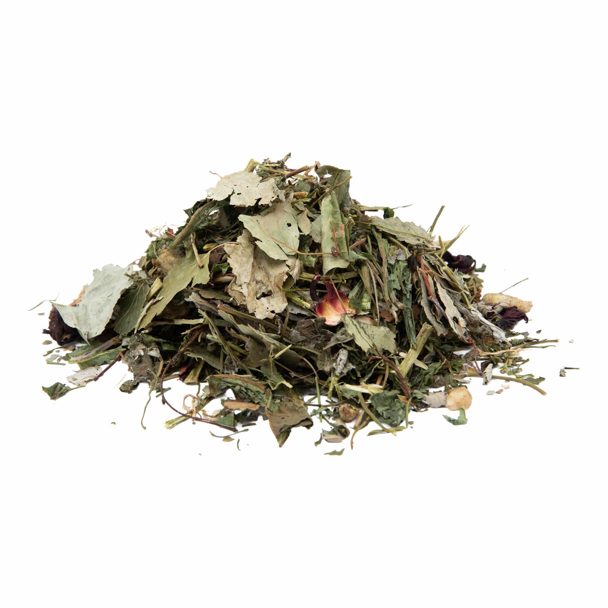 | Zusammensetzung | Petersilienstiele, Banane, Birkenblätter, Himbeerblätter, Löwenzahn, Luzerne, Hibiskus |