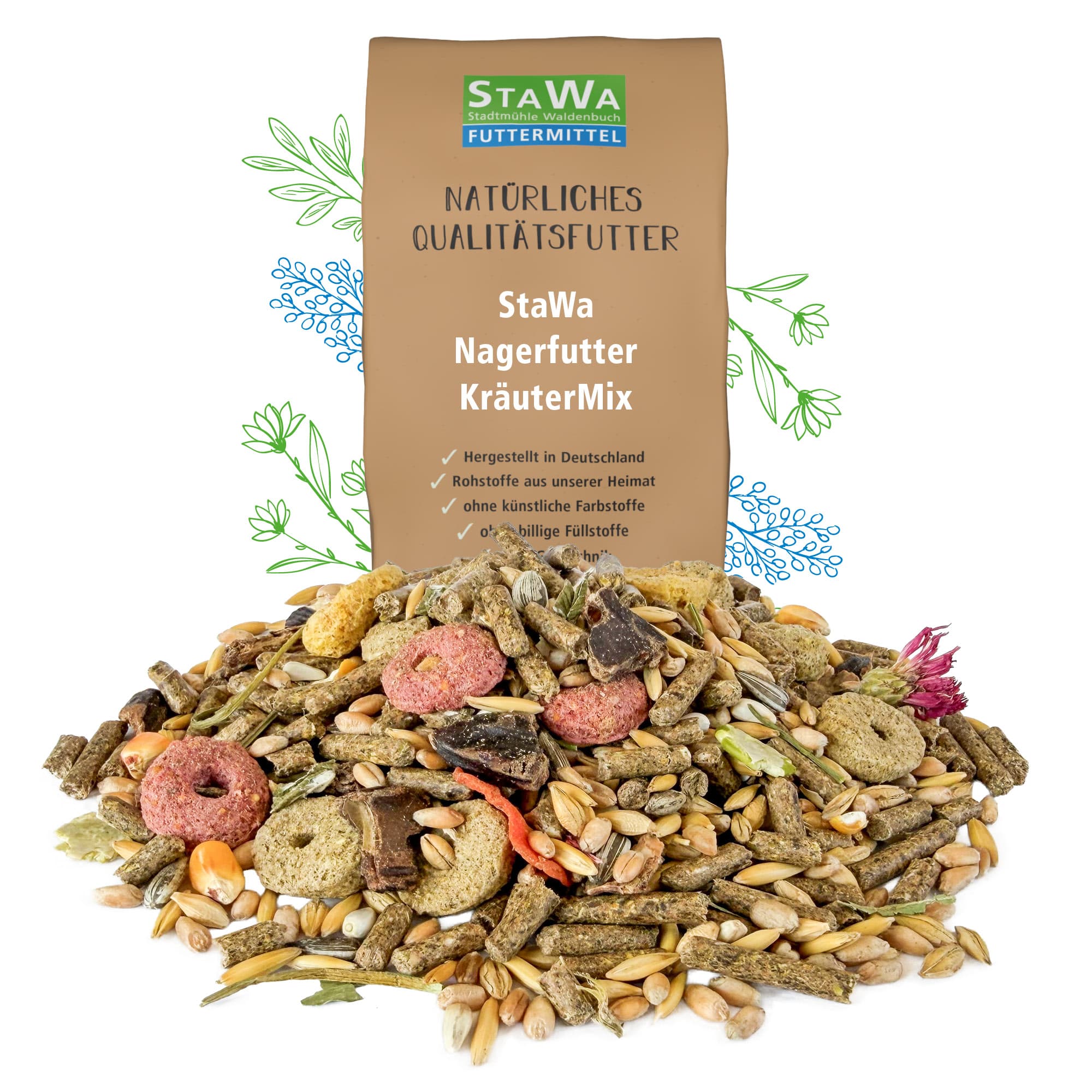 | Zusammensetzung | Weizenkleie, Gerste, Luzernegrünmehl, Weizen, Hafer, Mais ganz, Sonnenblumenkerne, Johannisbrot, Kardisaat, Karotten, Erbsenflocken, Haferschälkleie, Sonnenblumenextraktionsschrot mit Soapstock, Petersilienstiele, Himbeerblätter, Brennnessel, Spitzwegerich, Löwenzahn, Kornblume, Zuckerrübenmelasse, Zuckerrübenmelasseschnitzel, Calciumcarbonat, Natriumchlorid, Bierhefe, Rote Beete Pulver, Rapsöl |